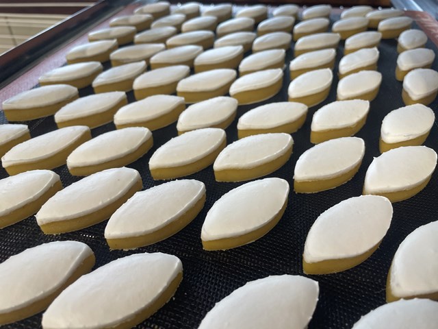 フランス南部エクス・アン・プロヴァンスの銘菓で、アーモンド、メロンコンフィ、砂糖が欠かせない材料とされています。今回はアーモンド、メロンコンフィ、オレンジコンフィに煮詰めたシロップを加えてペースト状にしたものを、専用の型に敷き詰め表面を砂糖の糖衣で仕上げています。