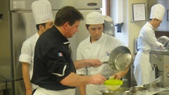 佐藤君「ボワイエシェフは無駄な動きがいっさい無く、作業が綺麗でした。その姿から無駄な作業が無く、作るものの状態に合わせて仕事を変えていけるということがプロの仕事なんだと実感しました。」