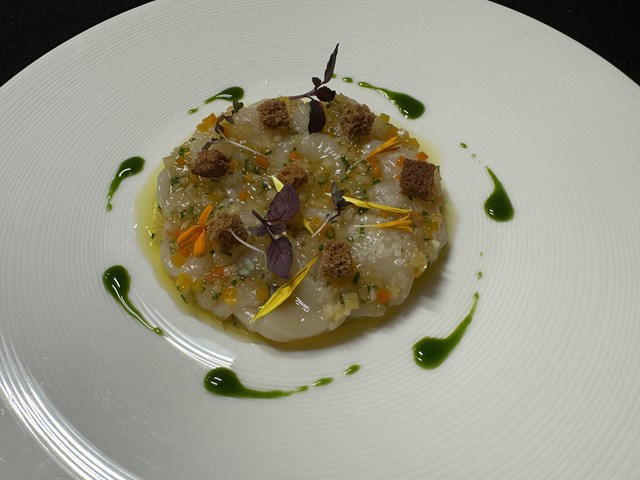 Carpaccio de Noix de Saint-Jacques Vinaigrette de Légumes marinés et Gingembre Frais