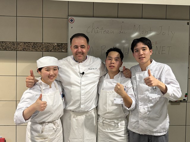 今回の講習は、フランシュ=コンテ地方のジュラ県にあるDole(ドール)近郊にある、1つ星レストランChâteau du Mont Joly(シャトー・デュ・モン・ジョリー)からシェフのM.Romuald FASSENET(ロミュアルド・ファスネ)氏が来校してくれました。