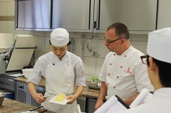 今村君「初めての外来講習の助手でとても緊張しましたが、フランスの職人が作るお菓子をすぐ近くで見ることができて、とても勉強になりました」
