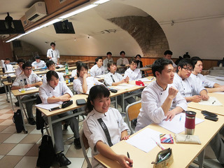 エスコフィエ校では学校企画の食べ歩きで既に多くの学生がレストラン・ブラスを訪れており、今回の講習を心待ちにしていました。