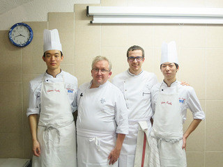 今回は普段来校いただいている、エグゼクティヴシェフのセバスチャン・ブラス氏が、所用で来校できなくなったため、シェフのサン=ジュニ氏とセコンドのジョナタン氏に料理を披露して頂きました。