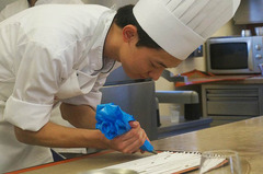 エスコフィエ校製菓コースの外来講習では、レストラン「オーベルジュ・ド・リル・バルブ」よりシェフパティシエのシェリュス氏にお越しいただきました。