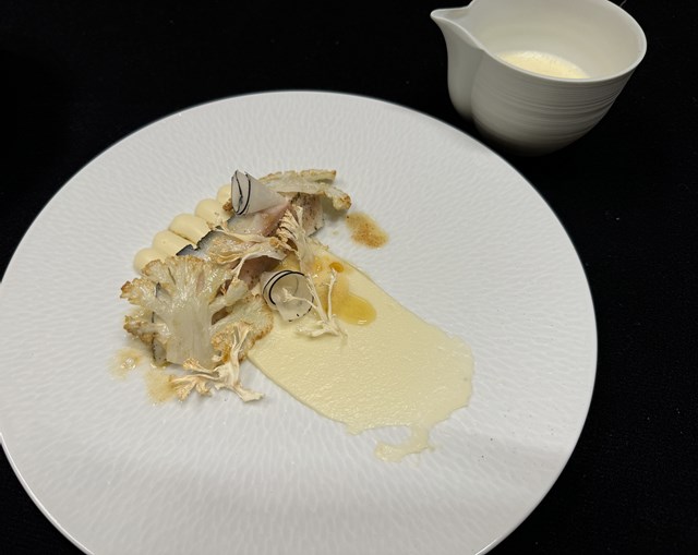 Bar Ikejimé cuisson nacrée / sauce babeurre Champagne et Choux-fleur Pluriels