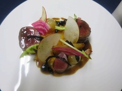 ソースは、ソース・ポワブラードというジビエに良く合わせる胡椒の効いたコクのあるソースを添えます。