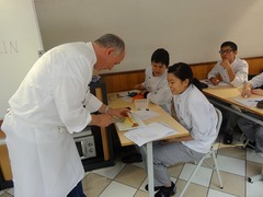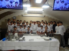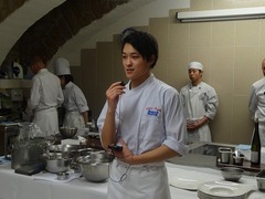 エーベルランシェフからは「授業に呼んでくれて感謝しています」との言葉をいただきましたが、レストランからエスコフィエ校までは車で4時間以上かかります。それにもかかわらず、仕込みされた食材をもってきていただき、また研修生の保坂 周君も一緒に連れてきて頂きました。