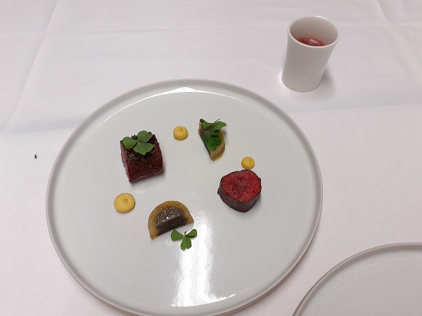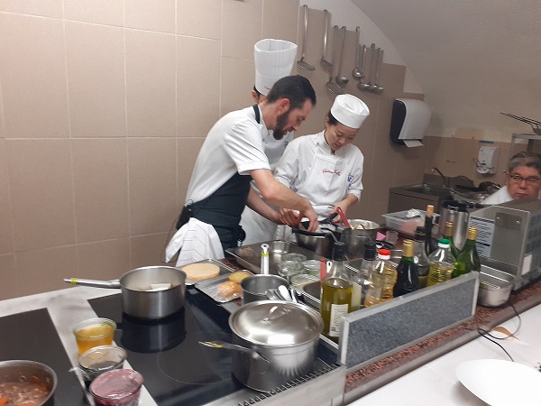 また、以前働かれていた3つ星レストラン「フロコン・ド・セル」から影響を受けていると感じる料理もあり、今後研修やその後就職へと続く研究生の料理人人生の先輩として、「環境、経験が自分の料理を形作る」という良い見本になったのではないかと思います。