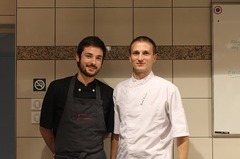 今回の外来講習はレストラン「オーベルジュ・ド・クロシュメルル」のオーナーシェフ、ロマン・バルト氏とシェフ・パティシエのクーザン氏にお越しいただきました。