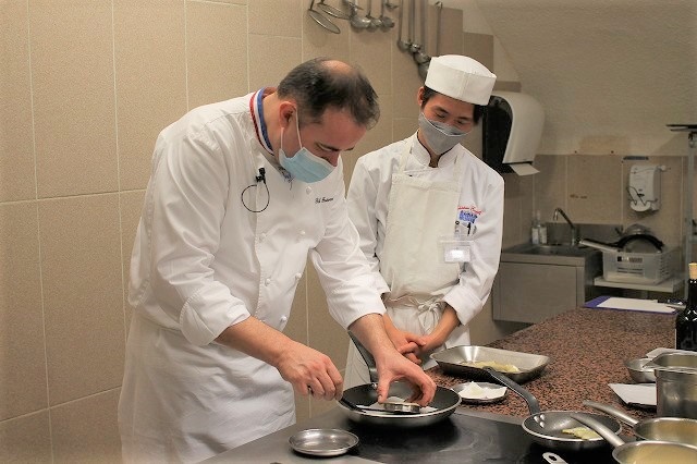 今回の講習はフランシュ=コンテ地方のホテルレストラン「シャトー・デュ・モン・ジョリー」のシェフ、ロミュアルド・ファスネ氏が講師を務めてくださいました。