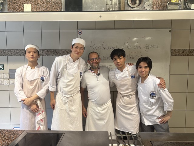 最後にシェフ、スタージュ生とアシスタントを務めた研究生で写真を撮りました。