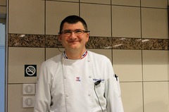 今回の外来講師は、ウイリアム・ジャキエ氏。リヨン2区にあるブション、「ル・ヴィヴァレ」のオーナーシェフです。「ブションbouchon」とは、リヨンの伝統的な料理などを提供する食堂のことです。