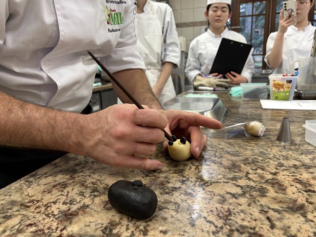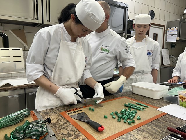 『今回2回目のアシスタントをさせていただきましたが、1回目の時よりフランス語を聞き取れるようになっていてよかったです。しかし、次にすることを予測して器具などを準備したりすることは出来なかったので悔しいです。なにより、1時間半の間にコンフィズリー4品とマジパン細工を仕上げられたことにびっくりして効率の良さと重要性がとても分かりました。スタージュに行くと効率がとても求められると思うのでもっと早く動けるようになりたいです。』