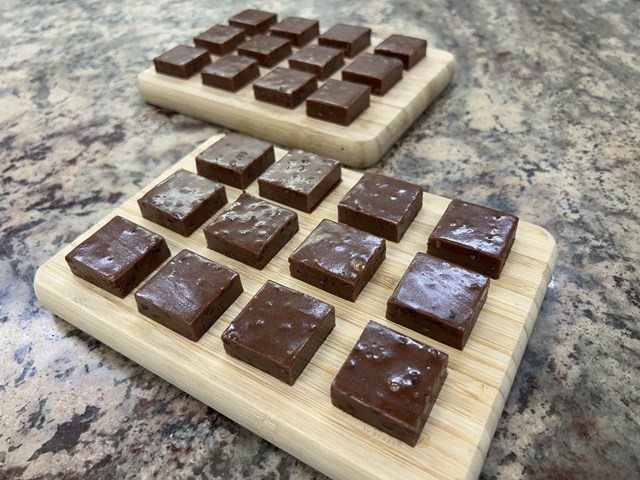 一般的には砂糖でキャラメルを作っていき、生クリームを加え煮詰めていくことが多いですが、最初から生クリームと砂糖を一緒に火にかけていくところが驚きでした。カカオ64%のショコラとカカオニブ(カカオ豆をローストし砕いたもの)が食感のアクセントとして入っています。
