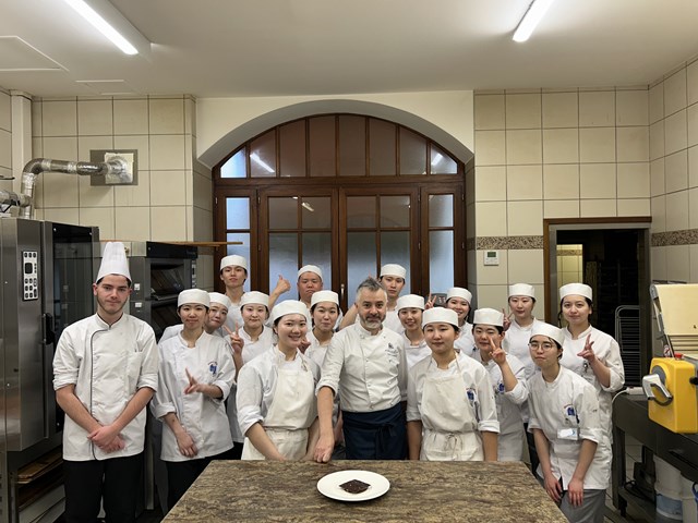 ペレ氏がシェフを務められているホテルレストラン Le Clair de la Plume(ル・クレール・ドゥ・ラ・プリュム)はフランス校から約200㎞下ったGringan(グリニャン)という街にあります。夏になるとラベンダーの観光地としても人気の地で、大勢の観光客が訪れます。また、ペレ氏はミシュランガイドとヴァローナ社による「デセール・パッション」という賞を受賞されてます。フランス校からのスタージュ(研修)先としてもお世話になっています。毎期講習にお越しくださっていますので、よろしければ前回のブログもご覧ください。