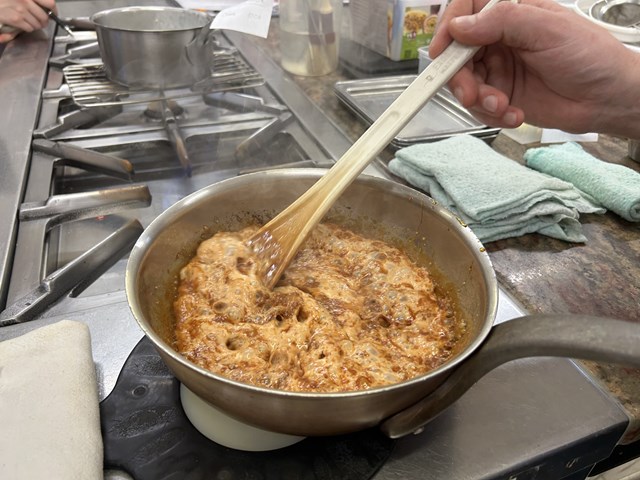キャラメルの色の見極めは何度も作っている研究生にとっても難しいですが泡の変化や色の変化を見せてくださいました。