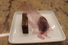 Equilibre pur d'un gâteau au chocolat'Manatée noir de Weiss' et d'un sorbet cassis