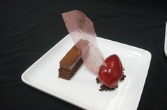 1品目Equilibre pur d'un gâteau au chocolat 'Manatée noir de Weiss' et d'un sorbet cassis