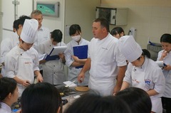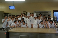 寺中さん「アシエットデセールに興味があり、ポワン氏のアシスタントを希望しました。外来講習では当日出来上がるまで製品がどのようなものかわかりません。事前に配布されたメニューを見て、材料のことなどを調べることで新しいことを知ることができました。最後にシェフからコミニケーションの必要性を教えていただき改めて言葉や積極性の大切さを感じました。」