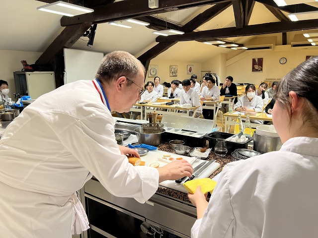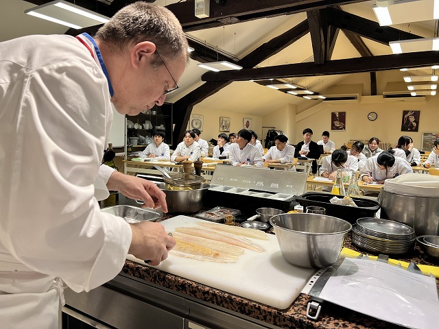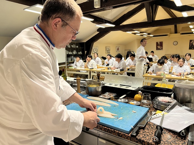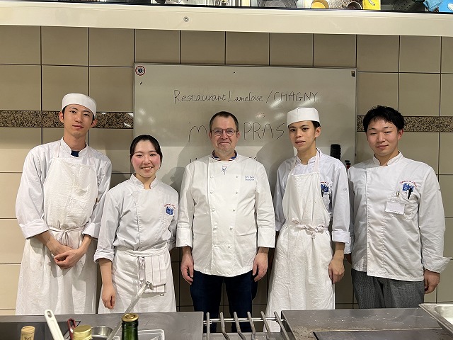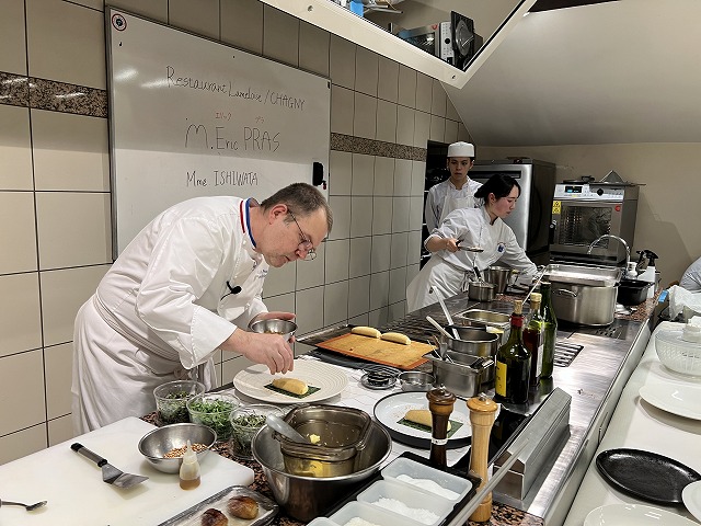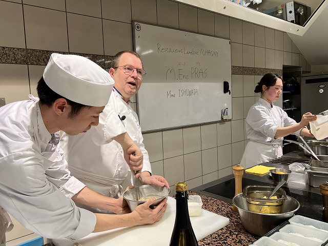 今回の調理外来講習に来ていただいたのは、フランス校から車で約2時間の場所にあるブルゴーニュ地方のCHAGNY(シャニー)という町にあるホテルレストラン「MAISON LAMELOISE(メゾン・ラムロワーズ)」より、Eric PRAS(エリック・プラ)氏にお越しいただきました。