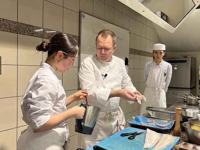 研修生も一緒に来校し、シェフとコミュニケーショを取って作業を進めていました。