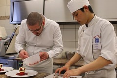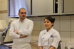 大迫君「アシスタントをするのはこれで2回目ですが、フランス語でシェフとコミュニケーションをとるのがまだまだ難しいと実感しました。研修生の横田さんが、スムーズにコミュニケーションを取っているのをみて、自分もあれくらいしっかり話せるように勉強しようと思いました」