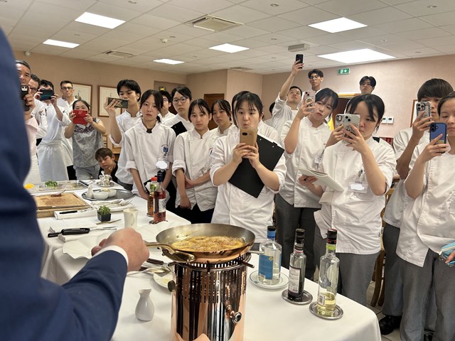 フランべは、高いパフォーマンスの効果があります。研究生たちもカメラを構えて、しっかりとその様子を目に焼き付けていました。