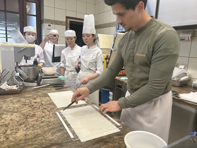 『今回外来講習のアシスタントをしてみて、"次にシェフが何を使って何をするのか考える力が足りない"と感じました。また、シェフは簡単そうに作業されているのに実際にやってみるととても難しい作業がたくさんありました。フランス語もドゥムール先生より話すのが速く、まだまだ理解できなかったので、早く理解できるように勉強に励みたいです。』