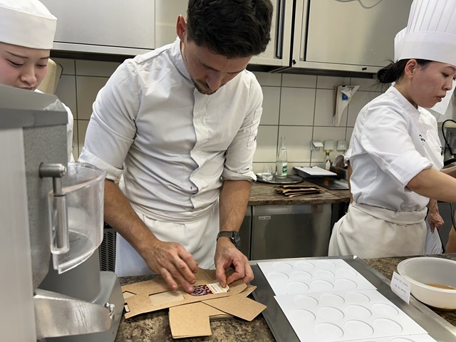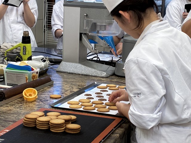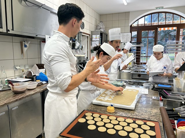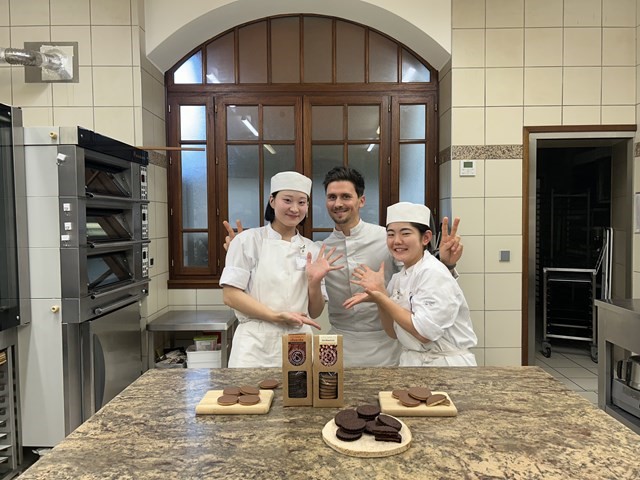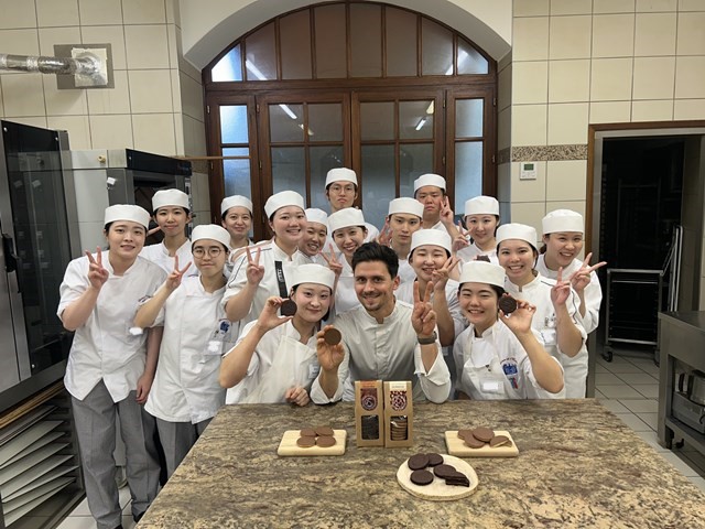 研究生からの「お菓子作りで大事にしていることは何ですか?」という質問では『まずは味、その次に作業性、そして見た目です』と答えてくださいました。研究生たちはフランス校に来てもうすぐ1か月。味にこだわりながら実習を頑張っていきましょう!