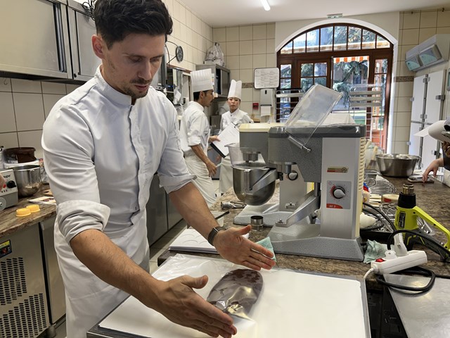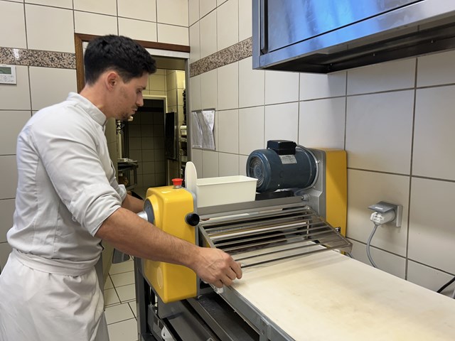 生地を作ってから伸ばすまでのスピードの速さに研究生は驚きを隠せません・・・!初の外来講習でアシスタントを務めた2人もドキドキしながらシェフと作業をしていきます。