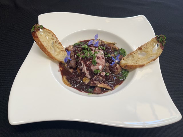 Œuf poché et son escalope de foie gras à la bourguignonne