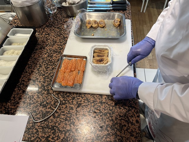 午後からはハンズオン形式でフォワ・グラの下処理と、フォワ・グラを使用した料理を各エキップで作りました。