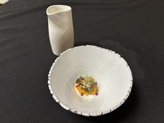 1品目は、バターナッツかぼちゃとエスカルゴを使ったアミューズです。
