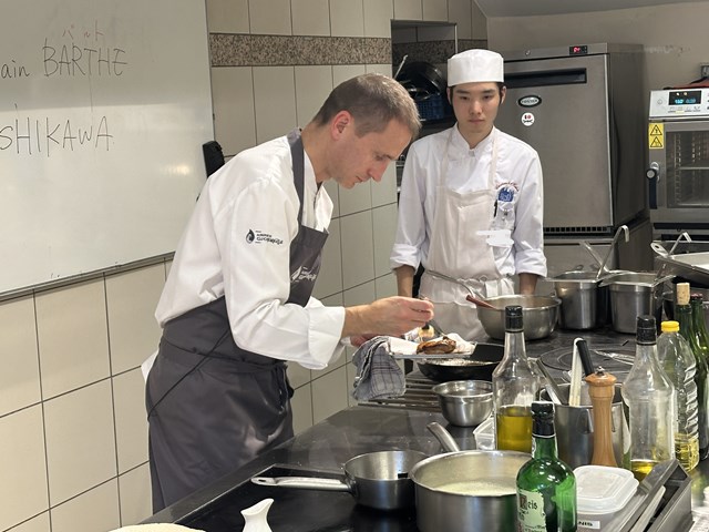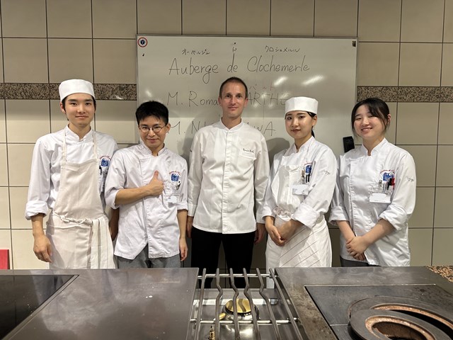 今期の調理研究生にとって初めての外来講習だったので、日本で学んだ作業工程とフランス人シェフの考え方の違いや、器具の使い方など研究生からシェフへの質疑応答も多く行われました。
