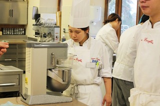 フランス校では使う器具の大きさなども規定があります。この組み合わせが作りやすいベストのサイズだと考えて作業しなければなりません。元々の量から加える材料の量を把握して計量をする必要があります。何をするにしても考えることが大切になりますが、お菓子作りは内容が深いな、と実感できて楽しくなります。ますますお菓子作りが好きになれる場所です。