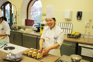 お菓子を学ぶなら本場で本物を、と強く思っていたので、フランス校の存在を知った時に「絶対に行きたい」と親にお願いしました。こちらに来てはじめの方は、講習はフランス語、ルセットはフランス校のやり方、と頭がパンクするくらい勉強することが多くて大変な日々でした。今でも大変ですが、慣れてくればフランス語を使っての実習ができるようになって心に余裕ができてきました。まだまだ学ぶことはたくさんあるので継続して頑張ります!