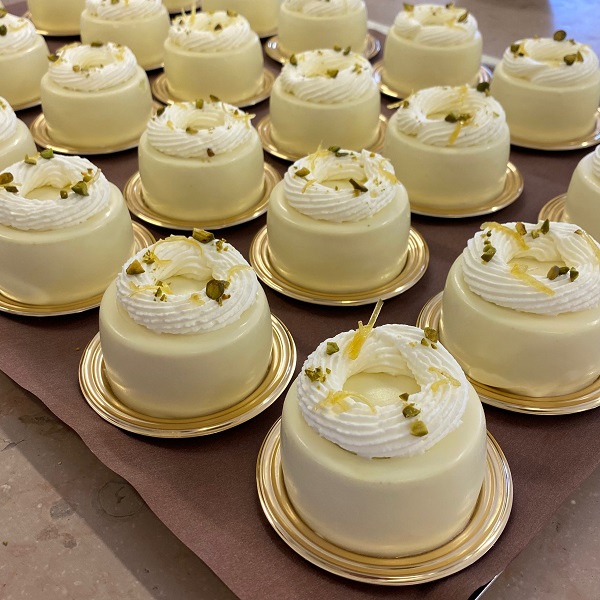 コース料理のあとに出すガトーとして、他のガトーとのバランス(重さ、味わい、見た目、色味、形)まで細かく考えないといけないので本当に大変でしたが、試作で形になったときはとても達成感があり、本番でももっといいものをclient(お客様)に食べてもらいたいという気持ちになりました。