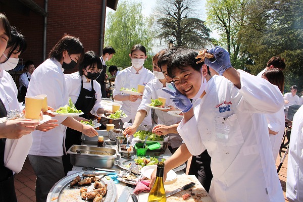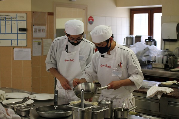 フランス校では、フランス人の先生がフランス語で喋るので、聞き取りがとても大変です。でも、フランス校では料理に対して集中できるし、本当の大切な友が見つかると思います。また、日本でも、辻調のマネジメント学科は、とても良い先生方のおかげで、今とそん色ないないくらいやらせてもらっていたなと、今になってみると思います。