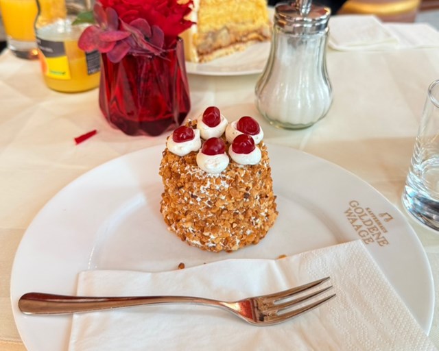 ドイツのフランクフルトではずっと食べてみたかったフランクフルタークランツを食べに行きました。あっさりとしたバタークリームとホロホロ崩れる生地との組み合わせはシンプルですがとても相性がよく、最高の一品でした。ドイツ菓子の素朴ながらおいしさがギュッと詰まった感じが個人的にとても大好きです。