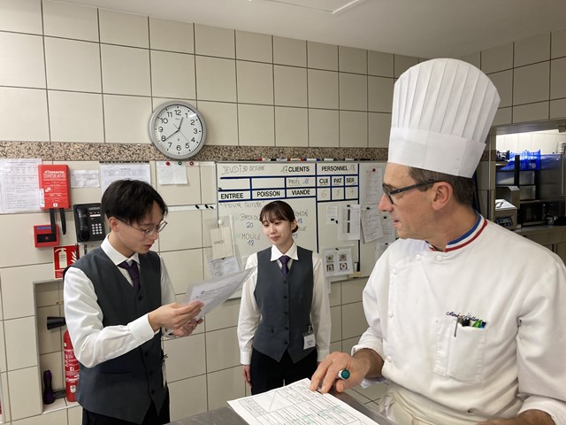 サーヴィスの授業でシェフのナレ先生にオーダーをフランス語で伝えます