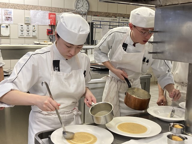 もちろんスタージュ(研修)に行くことを希望しています。スタージュ先では日本人が自分一人になるため、フランス語でしっかりコミュニケーションが取れるか不安ですが、それ以上に実際の調理場の緊張感や作業の進め方を間近で見られることへの楽しみの方が大きいです。約五カ月という短い期間ではありますが、技術を吸収するだけでなく、シェフが料理に込める思いや考え方を、会話を通して知ることができたらいいなと思っています。スタージュ開始まで残りわずかですが、少しでも多くの技術と自分で考えて行動できる力を身につけられるよう、日々の実習に全力で取り組んでいきたいです。