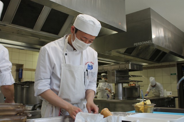 フランス料理を勉強するならフランスに行くのが一番であろう、と思いフランス校に進学しました。フランスに来ていろいろな文化の違いを感じています。まずフランスは春から夏にかけて日が落ちるのが遅いのですが、最初のうちは違和感がすごかったです。日曜など休みの日はお店が早くに閉まって少し不便ですし、驚いたことも多いですが、「日本より挨拶を大切にしているな」と感じたり、パンはどこで買ってもおいしかったり、フランスの良いところも体験しているところです。そして今回が初めての実家外暮らしなのですが、結構楽しく寮生活も過ごしています。