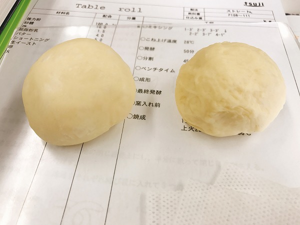 こちらは分割・丸め後のパン生地ですが、ずいぶん見た目に差がありますね(゚o゚;;