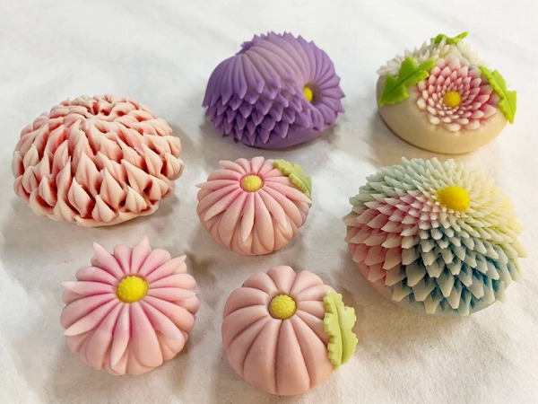 練切で菊の作り方を少し紹介しますね。