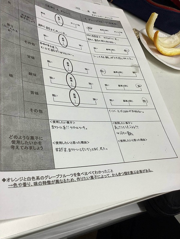 最後に「この食材を使ってどのようなお菓子に使えそうか」自分なりの感性を言語化します。