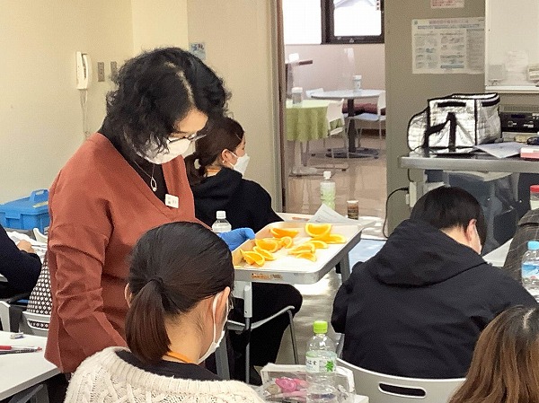 先生の解説を聞いた後、「実際にオレンジとグレープフルーツを食べ比べてみましょう」と先生の一言。