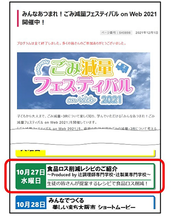 そして大阪市のHPに、その動画とレシピがアップされました。