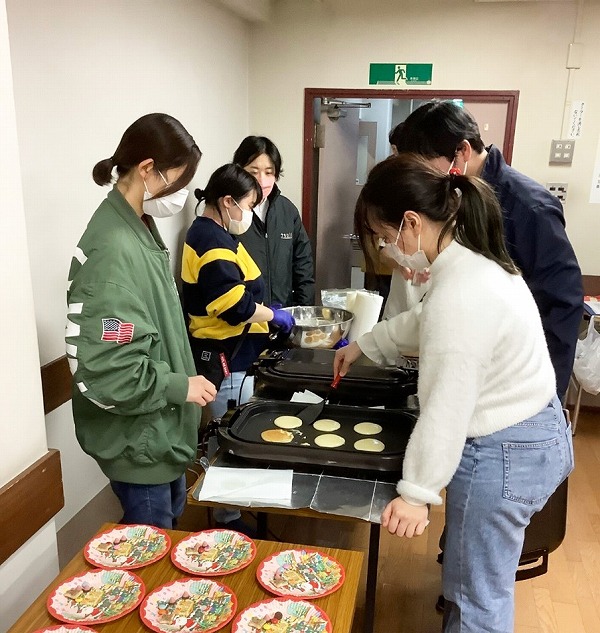 こちらはパンケーキを学生たちが焼いているところです。
