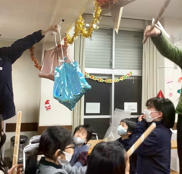 学生たちが考えた、小学生が楽しめるような企画として、「クリスマスカード作成」や「ピニャータ割り」、