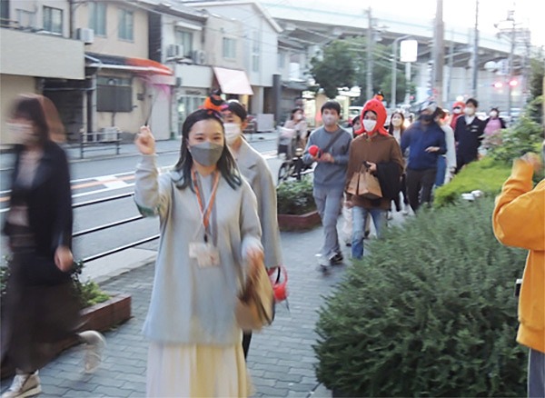 こどもたちと、子供食堂のボランティアの方を先導する学生です!